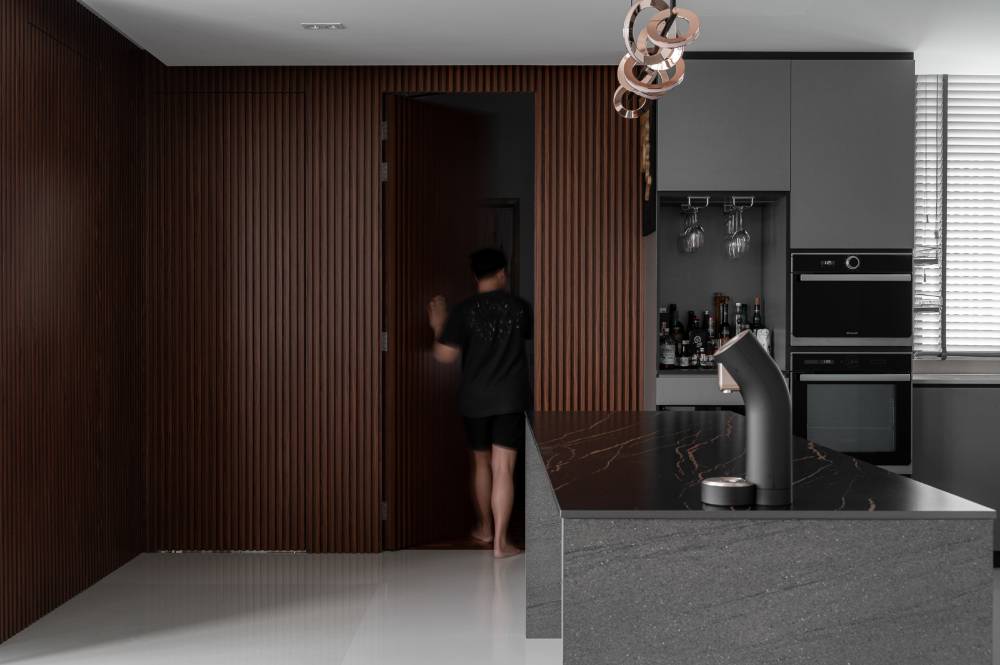 island area where friends and family gather for a drink. the seemless wall allows the environment to have more soothing effect and increases the ambience of the space especially night time while having a few cocktails!