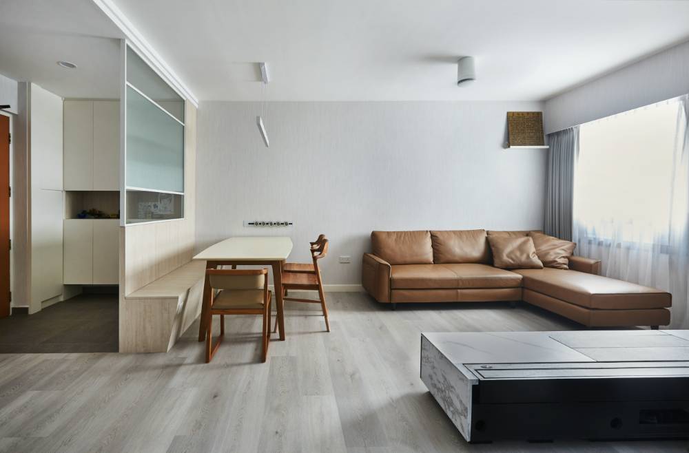 The main social heart of 259C Punggol is defined by its bright, seamless open-concept design. We intentionally linked the living and dining areas to maximize the sense of space and natural light, creating a fluid transition between relaxation and entertaining. Featuring clean lines and a contemporary palette, this expansive area is both functional for everyday life and effortlessly stylish for hosting guests, setting the serene tone for the entire home.